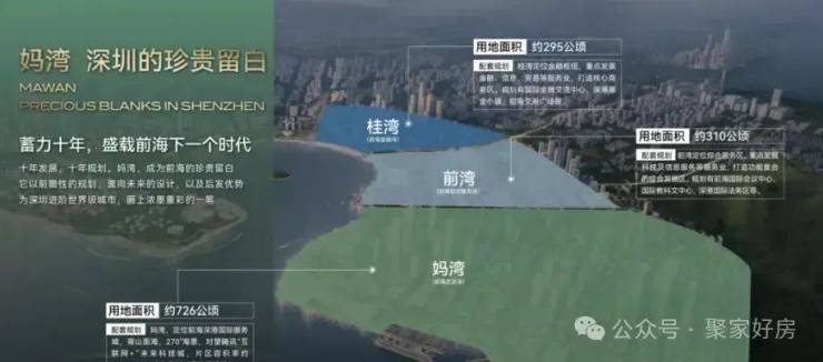 妈湾拥有山海合一资源,背靠大小南山,对望腾讯科技城,生态资源丰富。面积726.5公顷,容积率1.28-1.48,是低密生态豪宅住宅区的理想选择。官方策略是先建设配套、发展人才,再建房,促进妈湾与前湾、桂湾的协调发展。