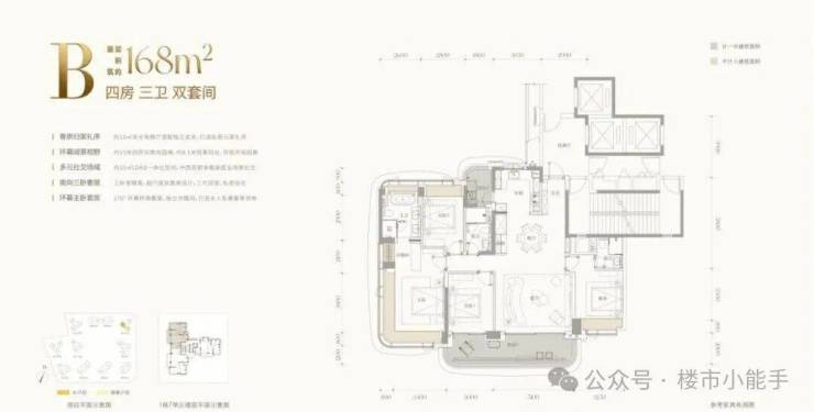 如果首付可以再多拿出60万到70万,其实可以考虑把预算往上提一档,看看168㎡这一类户型。