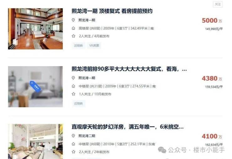 放到市场里看,同类一线海景大户型在二手市场本身就很少,比如熙龙湾260㎡以上,挂牌量一直不高,成交也比较慢,但价格反而比较稳。
