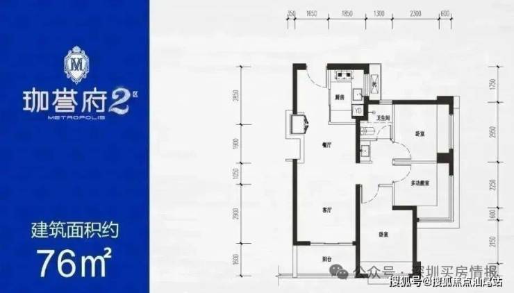 76㎡的3房2厅1卫,设计的是竖厅格局,LDKB一体化,客厅3.1米开间,S墙设计预留冰箱卡槽位,3个卧室分别为2.9/2.8/2.25米的宽度,U型厨房,得房率:77.54%(不含赠送),阳台进深1.6米,东南朝向。
