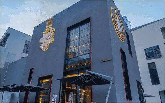 独栋、两层楼、外墙上的金属 logo达到 5 米高度,不规则的长方形窗户有红色光晕的烘托。店内300 多平米的营业面积,提供了 137 个座位。