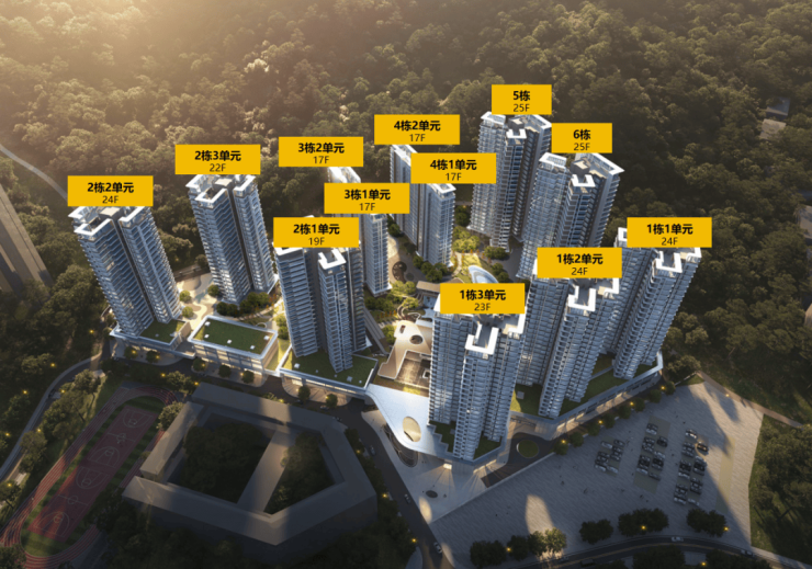 【建筑层高】住宅17-19-23-24-25层;裙房2-3层;景观廊架1层