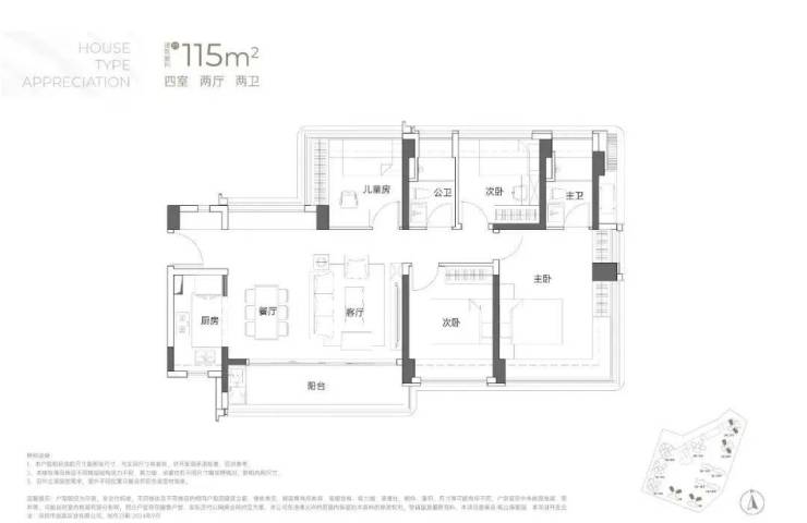 建面约115㎡4房2厅2卫