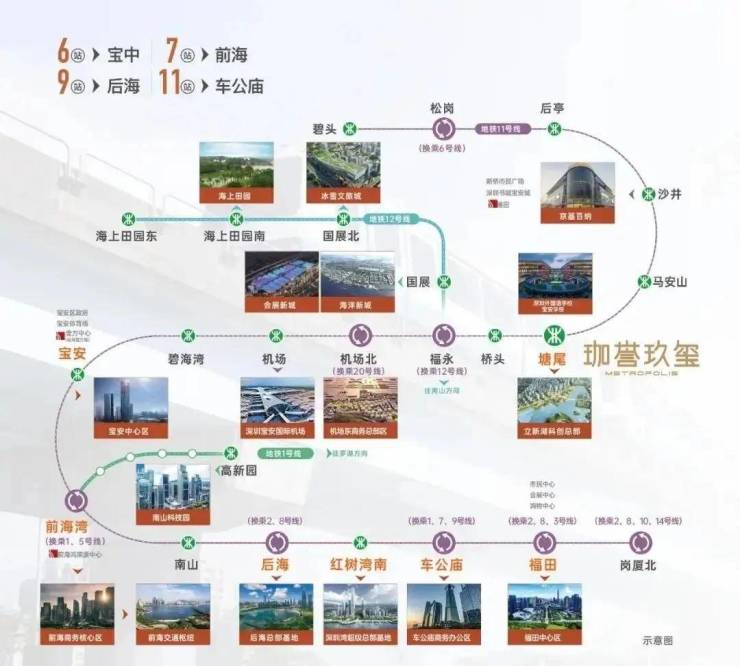 地铁:家门口即11号线塘尾站,6站宝中、7站前海、9站后海、11站车公庙,便捷通达南山、福田核心片区