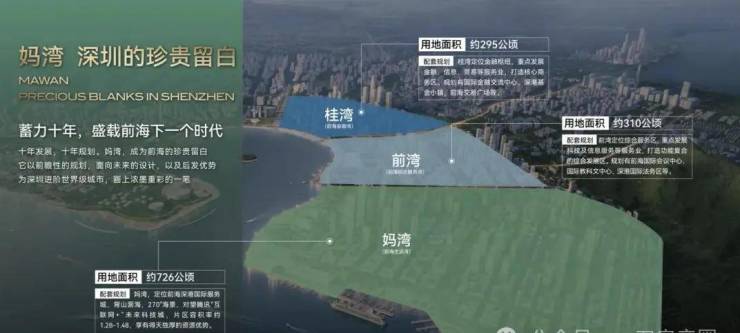 根据规划,妈湾有2.9平方公里的土地由招商局集团和前海管理局合资成立的公司统一开发运营,最新定位是前海深港国际服务城,与桂湾深港国际金融城共同组成了前海双核,是前海扩区后的首要、重点推进项目。