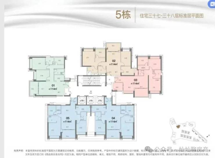 4栋总高37层分高低区,低区23楼以下是3梯4户,01和02户型115㎡西向看大南山,03和04户型118㎡东向看蛇口、深圳湾、香港的山海景观及城市景观。