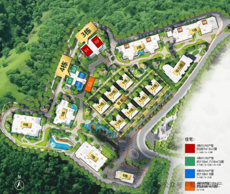 户型解析:高区24楼以上是3梯3户,01和02户型115㎡西向看大南山,03户型246㎡看山海景观及城市景观。。