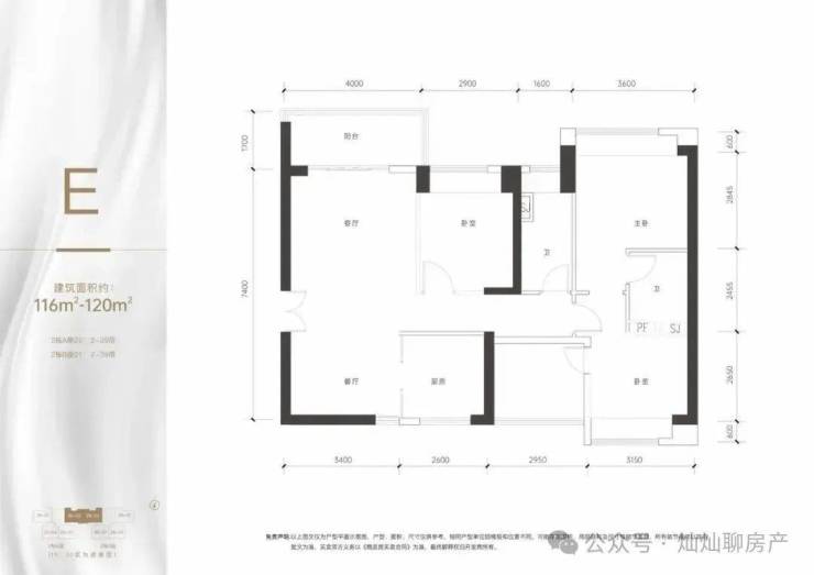 户型解析:建面约115/116㎡3房。