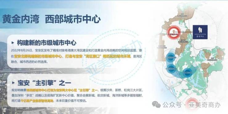 规划明确要将西部城市中心打造为宝安两大中心区“主引擎”之一,统筹沙井、新桥、松岗三大片区叠加深圳“多区”战略以及前海扩区新中心价值,聚合会展新城、航空新城、海洋新城等多能级辐射将打造干亿级产业集群智创高地,未来巨量价值不可预估。