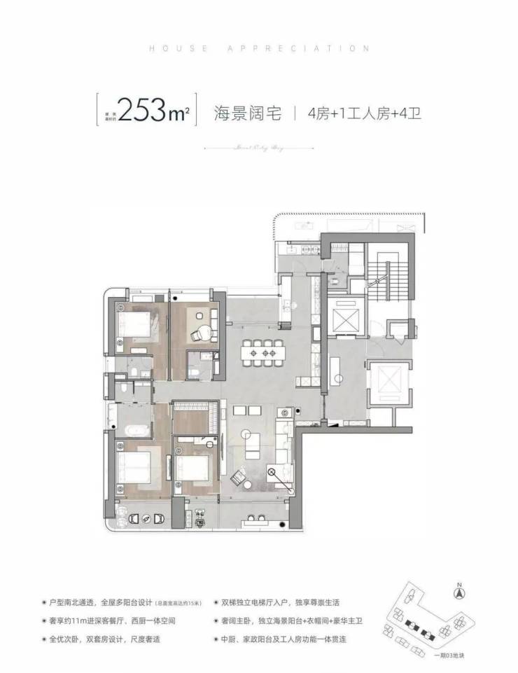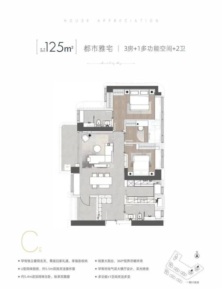 此外,项目还规划有约200m超高层视野下的天际居所,私享城市山海美景,打造滨海都会生活范本,领衔环湾顶端圈层生活;建面约165——290㎡的领袖公寓,作为70年产权的揽海私寓,助您打造全球先驱生活方式。