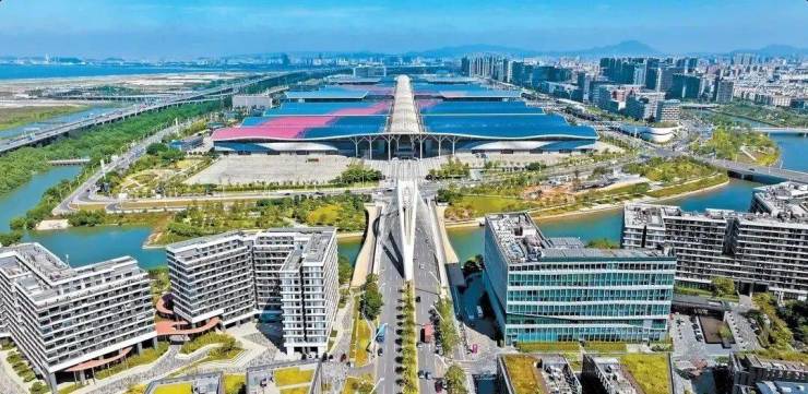 南面,是蜿蜒的会展河,倒映着蓝天白云。