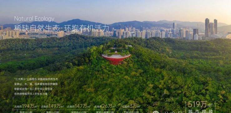 深业上城“缝合城市”创新理念,斥巨资打造两座生态廊桥,步行10分钟直通莲花山、笔架山、中心公园,纵享约4700亩城市绿肺,让城市与自然从容交汇。