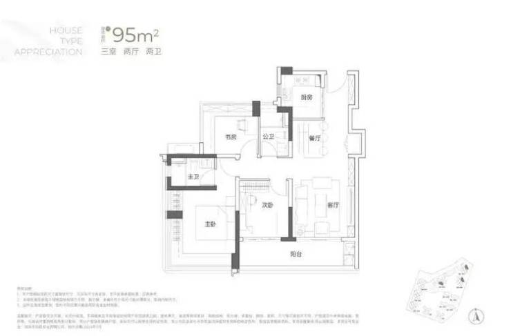 建面约95㎡3房2厅2卫
