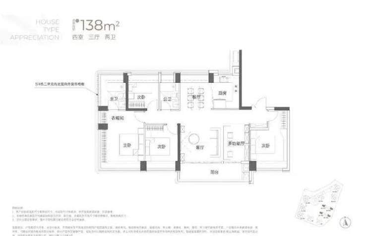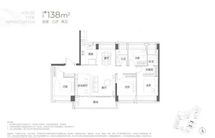 建面约138㎡4房3厅2卫