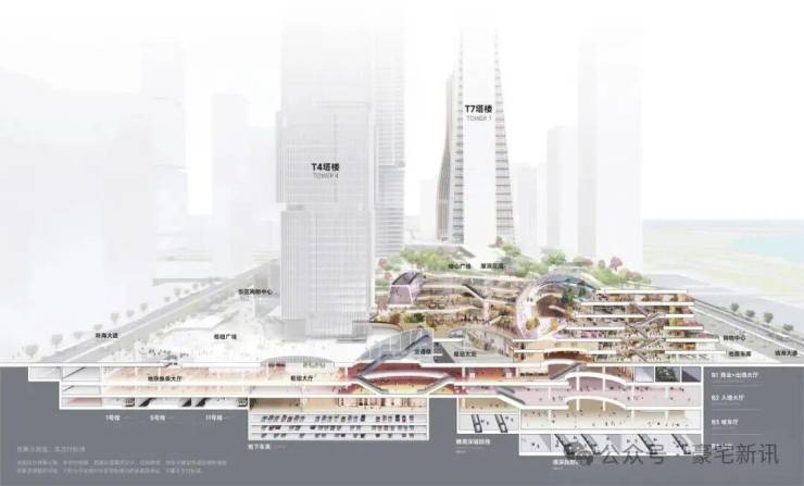 深铁前海国际枢纽中心,作为第四代TOD“产城融合”先锋实践,领先国际TOD案例对“交通+物业”的基础融合,将实现“枢纽功能、产业生态、城市生活”复合赋能。本着“以站聚人、以人促城、以城兴产”的开发理念,项目在占地约20万㎡的土地打造亚洲大型综合交通枢纽之一,串联地铁1/5/11号线、穗莞深城际(建设中)、港深西部铁路(规划中)等5条轨道线路,在此之上汇聚商务公寓、国际总部办公、奢华酒店、时尚商业、国际枢纽、公园广场六大业态于一体,打造天际未来之城、跨境枢纽之城、TOD站城大都会。