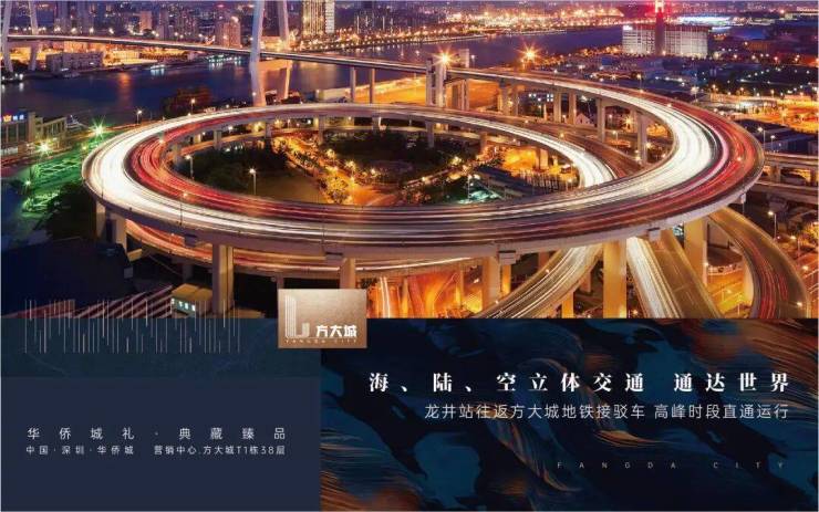 方大城位于南山区华侨城板块北,总占地3.5万㎡,总建面33万㎡,由4座办公塔楼、4层商业裙房及4层地下车库组成,是目前华侨城片区商务楼宇规模最大、物业类型最丰富的城市综合体,北环一线商务地标,当之无愧的区域标杆。