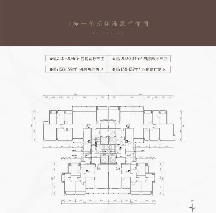 建面约138-139m四房两厅两卫