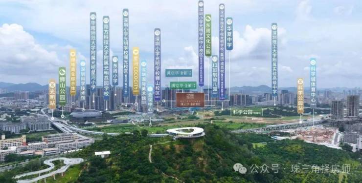 商业配套:项目自带3万平方米商业街,覆盖日常生活需求;1公里范围内有在建的星河COCO City(6.3万平方米)和绿地商业(4.3万平方米)。地铁2站可直达光明核心商圈,包括蓝鲸世界(13万平方米)和万达广场(4.5万平方米)。此外,周边社区底商密集,形成多层级商业网络。科学公园内还规划了文化商业配套,如深圳国际美术馆和深圳科学技术馆,未来将进一步提升区域商业能级。