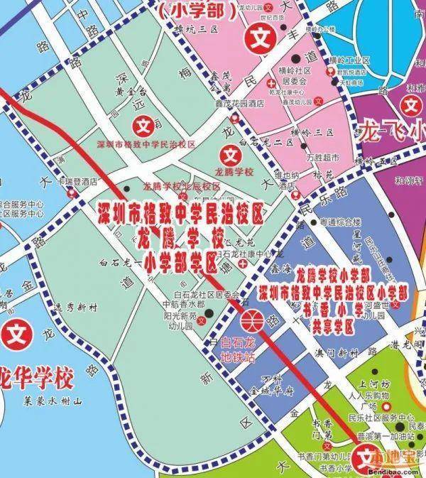 格致中学民治学校:总占地面积3.6万㎡,是1所九年制36班公办学校,可以提供1800个学位,校区在2024年4月27日已经正式动工,在2023年首次招生,目前是借址办学。