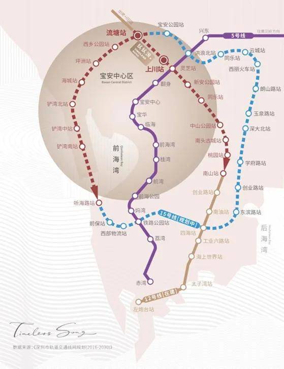 家门口三地铁畅通全城,项目周边目前已开通地铁5号线,周边规划有12号线(在建)上川站离项目仅400m、15号线流塘站(在建)离项目仅700m。地铁12号线预计将于明年年底建成通车,并与15号“超级黄金线”在流塘站交汇,