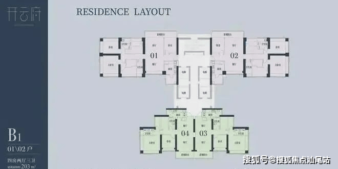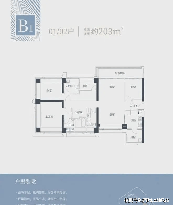 1栋二单元B1户型:面积约为203㎡