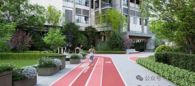 2大有氧跑道:园林中约180m元气跑道、运动场艺术跑道