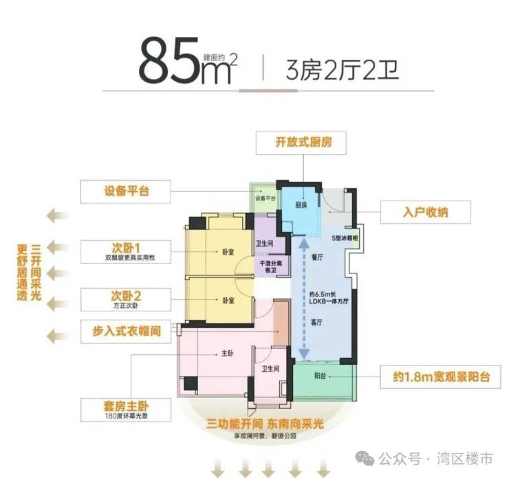 大主卧270度环幕采光,3面环景通透舒适