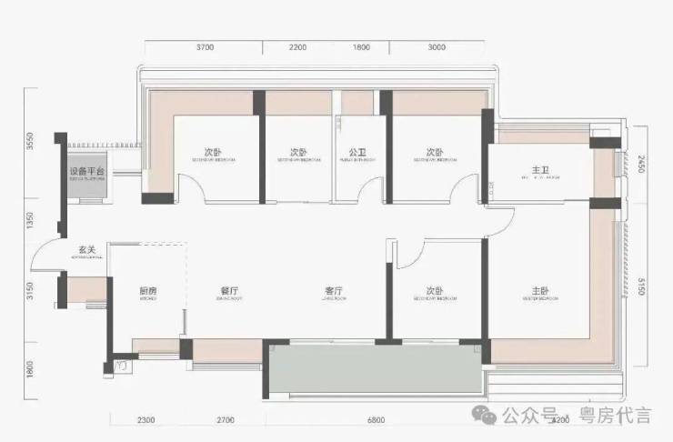 主卧套房+次卧类套房设计,提升家庭各成员居住尊严。