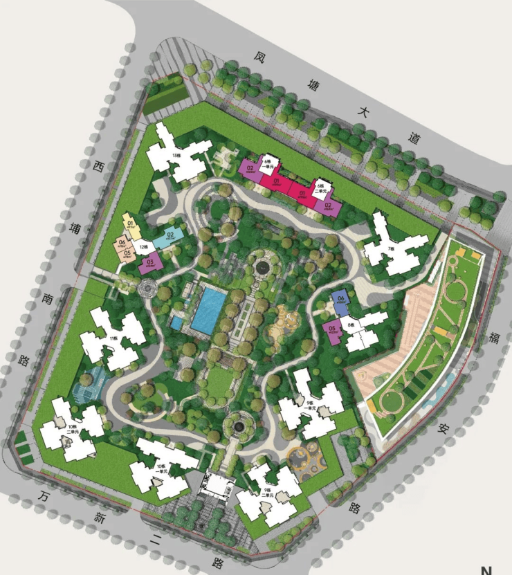 生态方面: 项目距离凤凰山森林公园约3.5km,周边还有万丰湖湿地公园、立新湖公园等绿色休闲配套。