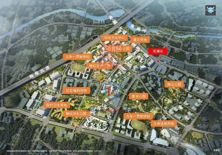 按照目前的学区划分,小学学区为观澜中心学校小学部,初中为观澜二中、龙华第三外国语初中部。