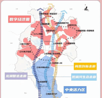 根据龙华《“一圈一区三廊”区域发展格局地图》规划显示,未来,龙华区将按照区块集聚、组团发展、功能互补的理念,打造数字经济圈、中央活力区、三大都市走廊,推动区域协调发展。项目刚好位于三廊之一的观澜生态走廊的中轴位置,属于龙华的中央活力区;拥有龙华目前最为成熟的商务行政、生活文化、休闲娱乐配套。