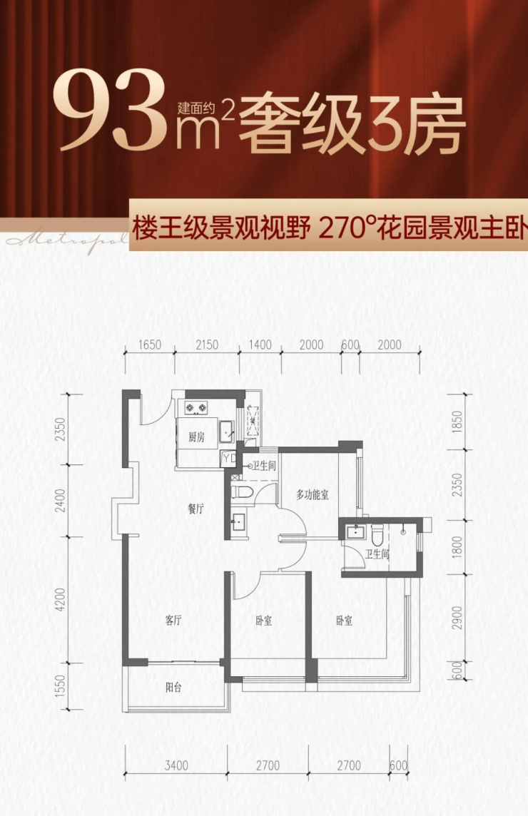 建面约77㎡-93㎡全能三房【新品户型鉴赏】