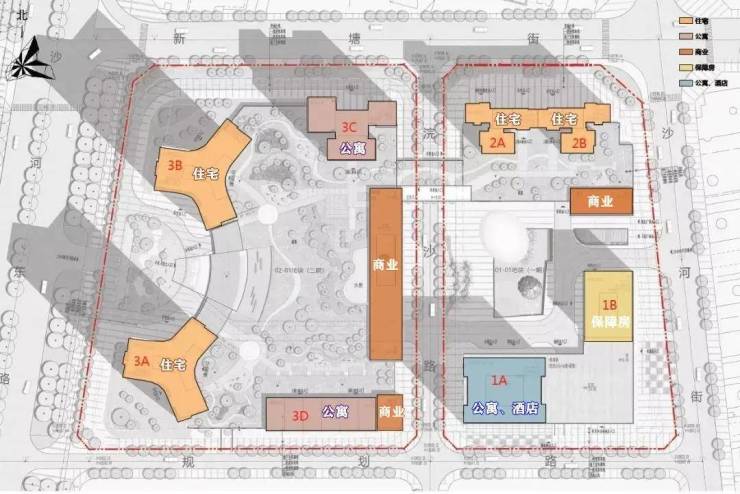 西地块包含2栋高约250米的超高层住宅,另有1栋约50层高的商务公寓,其中,3栋A座69层,结构高度243.55米高(装饰高度252米);3栋B座69层,结构高度243.55米高装饰高度252米)未来将成为南山最高的住宅建筑;3栋C座50层,结构高度172.10米高;3栋D座4层16.9米高,二期(3A楼)作为中国最高的装配式住宅建筑,2024年春节前夕该楼成功封顶;