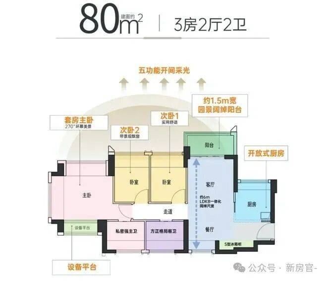 4开间约12m,全东南向采光,视野开阔,大套房主卧180度环幕采光景观,S型墙体设计冰箱位,使用空间利用更合理,客餐厅一体化设计,空间利用更高效,家人间互动交流感更强。