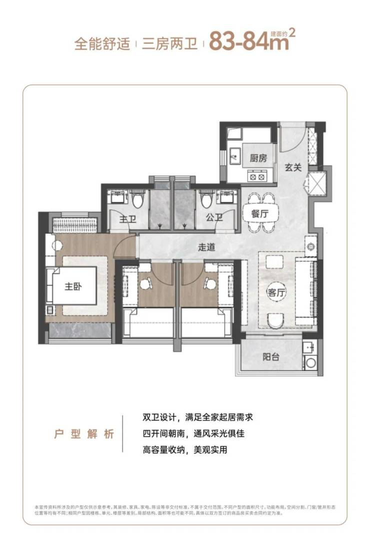 产品面积:约67-106㎡二至四房