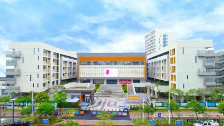 深圳实验坪山学校,总用地面积3.87万平方米,总建筑面积7.91万平方米,为54班九年一贯制学校,可提供2520个学位,2024年首次招生。