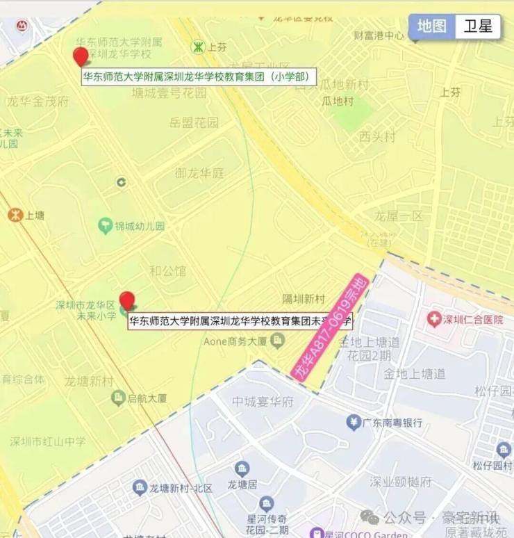龙华一梯队的龙华实验学校,小学就比较一般,距离学校约500米-1公里,日常接送较为方便,6号线上芬站距离约700米,稍微有点距离但一般都在可接受范围内,周边商业氛围浓厚,短距离内也有星河cocoGarden,龙华天虹商场等大型商业