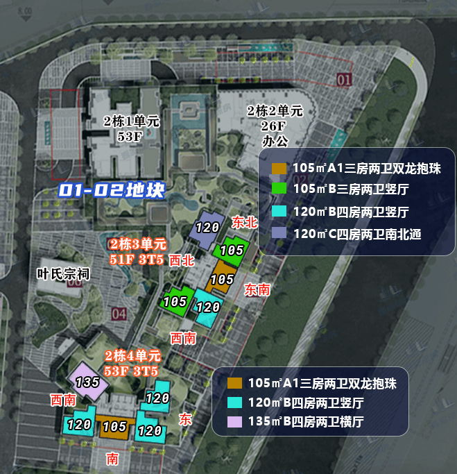 规划为4栋超高层塔楼,2栋一单元住宅174米53层,2栋二单元办公130米27层,2栋三单元住宅168米51层,2栋4单元住宅175米53层。规划872套,其中回迁544套+可售328套,停车位747个。