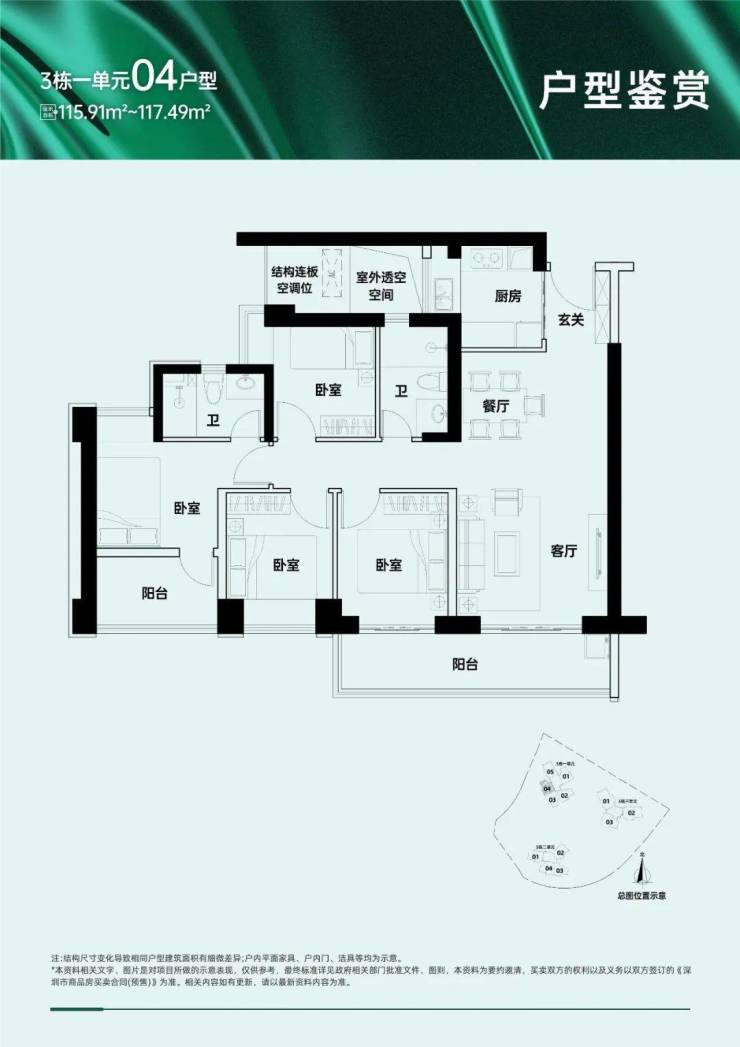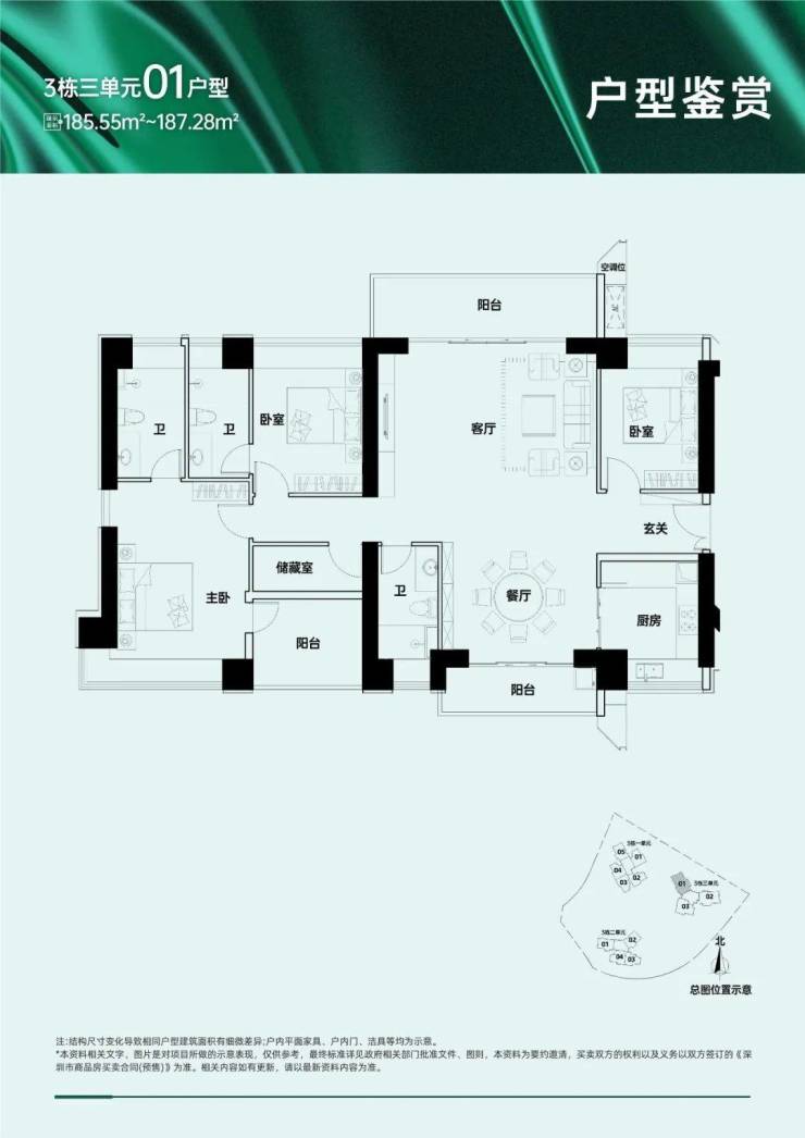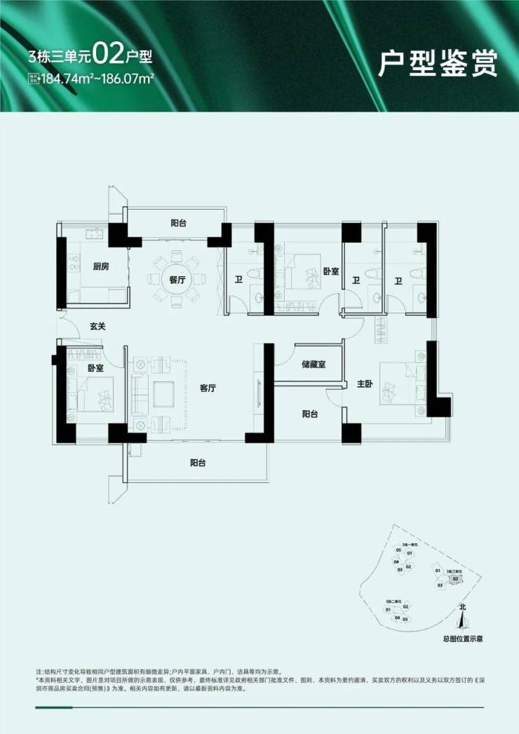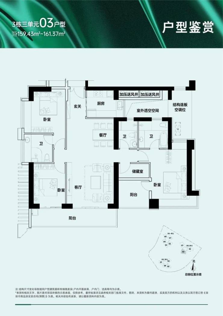 109-112㎡三房两卫、157-159㎡五房三卫、168-169㎡五房三卫(四阳台设计);