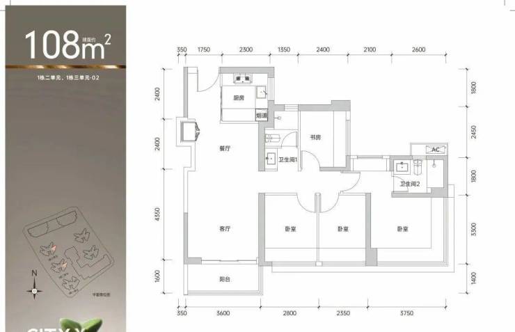 建筑面积约89㎡的3+1房2卫的01/07户型:全能型成长空间典范