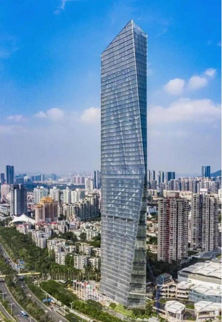 位于南山区兴海大道 3040 号,总建筑面积约 20 万㎡,62 层建筑高度 300 米,是前海自贸片区核心的 300 米以上超高层办公楼,也是前海目前的第一高度。这座全球知名的扭转式建筑,以 45° 双旋转艺术造型成为前海地标,地铁铁路公园站上盖的区位优势,让其实现 “地铁零接驳”,一面背山三面环海的山海景观,加之金融、商贸为主的业态定位,成为前海对接全球的国际企业展示平台,是南山前海板块万亿产业的重要商务载体。