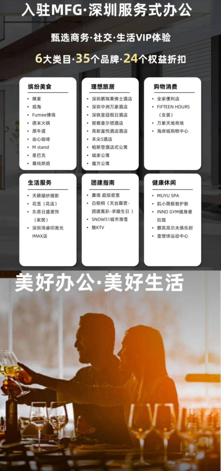 加入MFG尊享全国10个城市核心CBD超甲级写字楼高端商办服务。