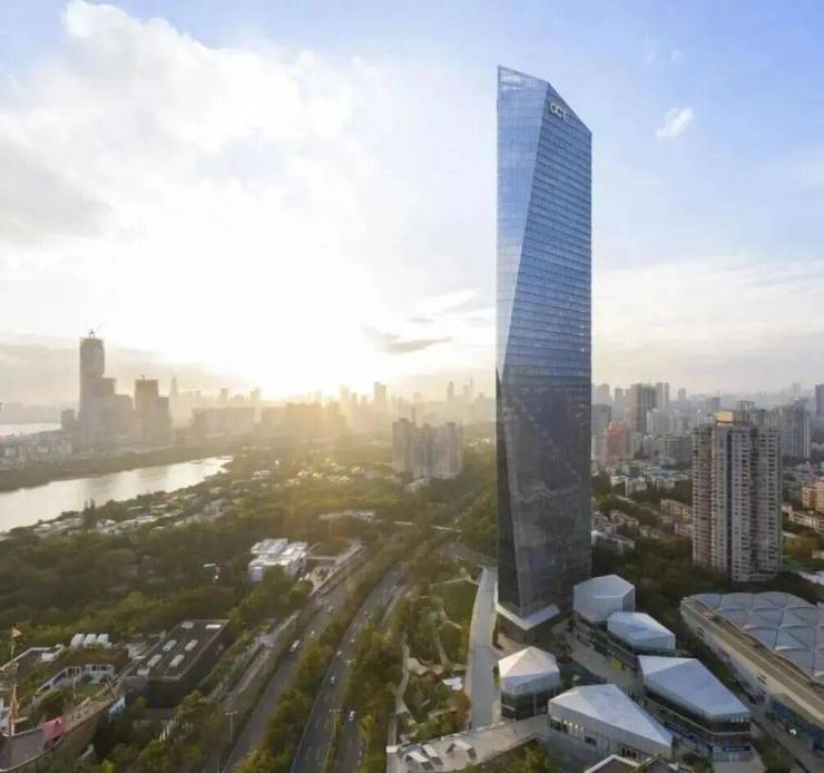 紧邻南山区深南大道,是华侨城板块唯一一座 300 米以上的超高层办公楼,59 层建筑主体高度恰好 300 米,总建筑面积约 18.9 万㎡。其钻石切面的外立面成为深南大道的视觉亮点,配备 24 小时独立空调,低区绿荫环绕、高区俯瞰华侨城全景,既承接了深南大道的交通优势,又依托华侨城的生态资源,成为南山中部板块的高端商务核心,填补了华侨城板块超高层办公的空白。