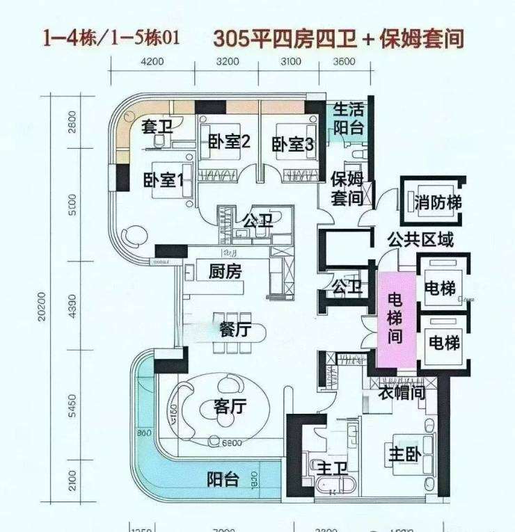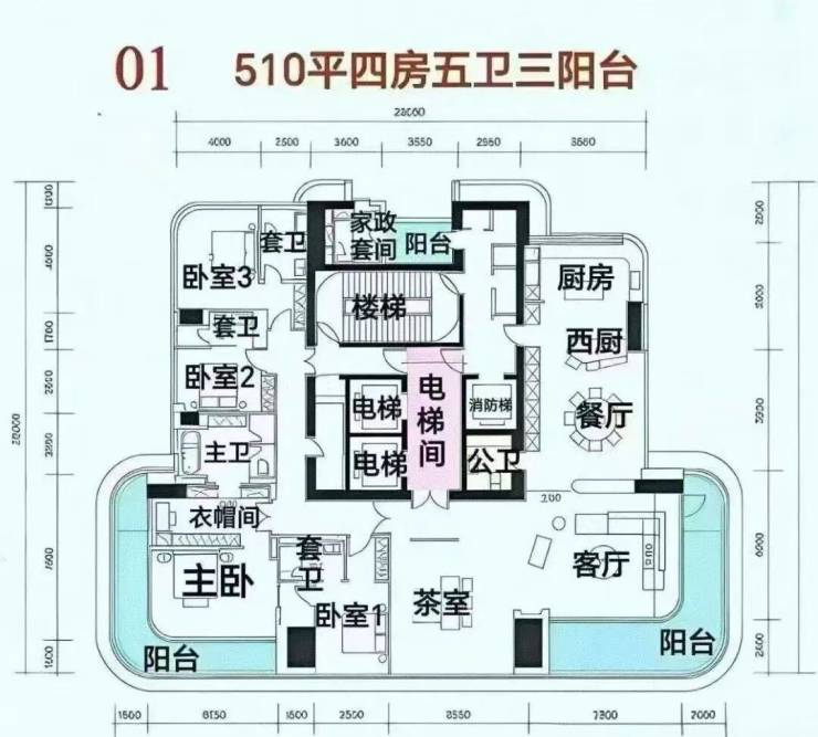 改善户型:370㎡四房五卫+家政套间