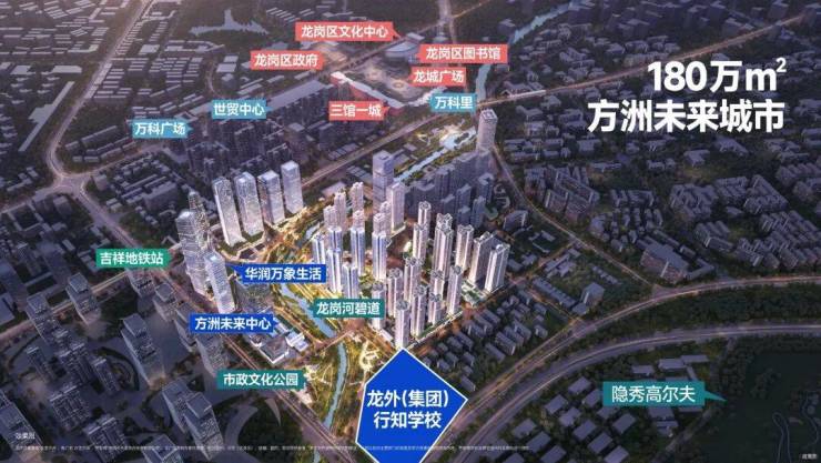 合正方洲瀚府,位于深圳市龙岗中心区核心CBD,是粤港澳大湾区东西双轴发展带的重要节点,紧邻龙岗区政府及“三馆一城”(科技馆、青少年宫、公共艺术馆、深圳书城龙岗城),区域内集聚政务、商务、文化资源。项目地处龙岗河两岸,是深圳唯一的“一河两岸”亲水社区,独占近1公里滨水生态资源,且龙岗河碧道升级工程投资26.6亿元,打造国际级滨水休闲带,周边3公里内覆盖4个大型公园及高尔夫球场,生态优势显著。