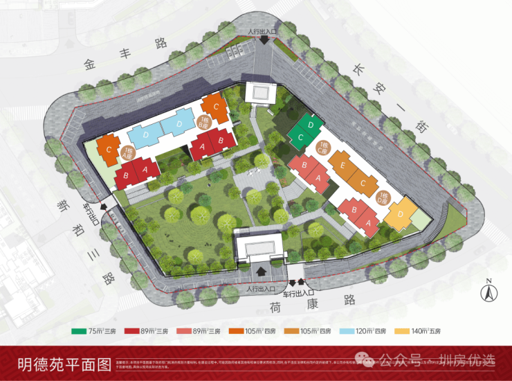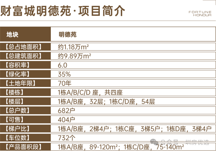 本次推售的财富城明德苑,总占地面积约1.18万㎡,总建筑面积约9.89万㎡,计容建筑面积约7.64万㎡,容积率6.45,绿化率35%,共规划2栋4座32-54层高的住宅,其中1栋A/B座住宅32F,1栋C/D座住宅54F,规划有4950㎡商业。