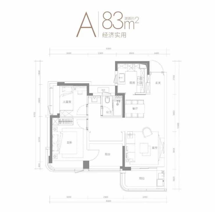 :竖厅+U型厨房+双卫,得房率86%,主卧套间设计,总价门槛光明最低;