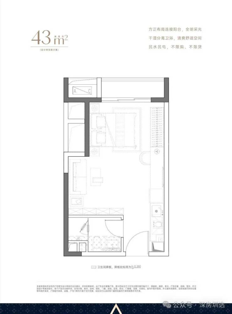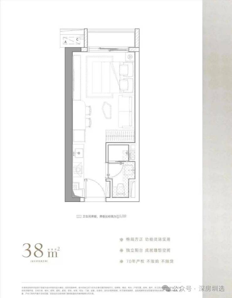 灵活创新产品:建面约38-43㎡福田芯资产,户户臻配阳台,支持自由分割与场景定制,满足自住、出租、商务等多元场域。