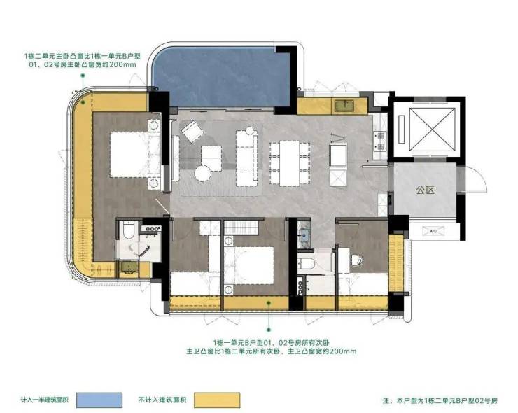 • 270°弧形无柱大尺度飘窗、大宽厅、大阳台,带来更多使用空间。