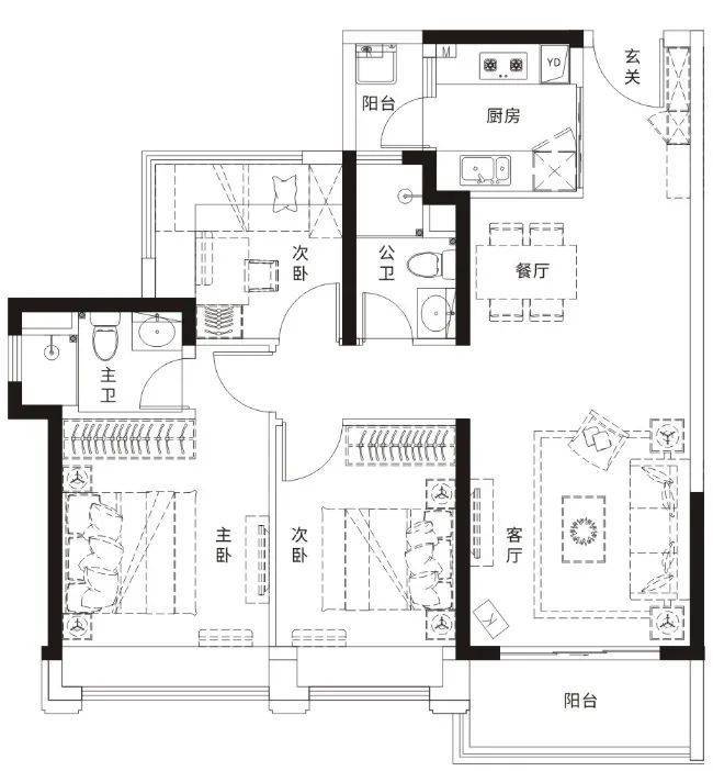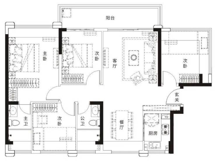 全线约96-114㎡纯3-4房产品,为您限定优质圈层的精致居所。
